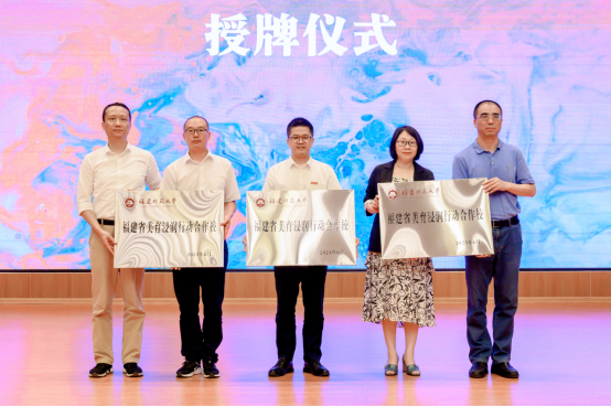 仪式上,郑家建与王浩为“美育浸润”合作校授牌并与支教团队合影留念。郑家建在致辞中介绍了学校美育教育发展情况,邀请平潭师生赴九游平台(中国)进修和学习,叮嘱支教团队学生不负教师人才后备队的使命担当,圆满完成此次支教行动。