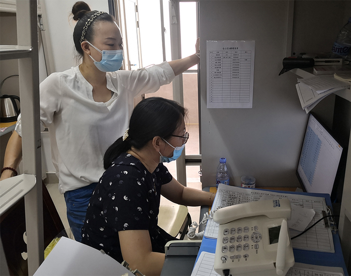 9月的福州还非常炎热。学校监测点没有电梯,为了让学生早一小时住进房间,早一分钟吃上饭,工作人员上上下下一路小跑,大汗淋漓,但他们毫不惧怕,没有怨言,勇敢挑起疫情防控工作的重担。从前台登记、房务整理、床单换洗、消毒,到送餐、送生活用品等,旗山教育培训中心的9名职工已在岗位上连续超负荷工作长达几十个小时。