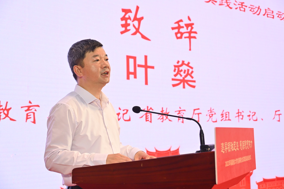 叶燊在致词中强调,各高校要把本次暑期社会实践活动与深入开展学习贯彻习近平新时代中国特色社会主义思想主题教育贯通起来,与教育部关于组织开展“习近平总书记与大学生在一起”学习分享活动有关要求结合起来。一要紧扣主题主线,引领青年成长,最广泛地把青年团结起来、组织起来、动员起来,激励广大青年增强历史责任感和使命感;二要突出学思践悟,展现青年担当,引导广大师生把书本知识和社会课堂紧密结合起来,做到学思用贯通、知信行统一;三要聚焦成果成效,彰显青春力量,充分调动师生积极性和创造性,为推进强国建设、民族复兴伟业汇聚起磅礴的青春力量。