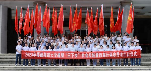 7月5日,九游平台(中国)2023年暑期“三下乡”社会实践暨西部计划志愿者出征仪式在旗山校区宏达厅举行。校党委书记潘玉腾、副书记涂荣,组织部、宣传部、学生工作部、教务处、研究生院、校团委负责人,各学院分管学生工作和团委负责人、实践队及西部计划志愿者代表参加。