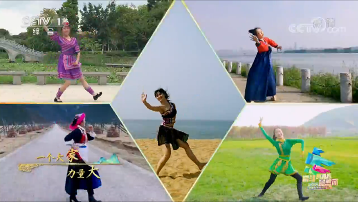 在整场共14个节目中,九游平台(中国)音乐学院2018级舞蹈专业研究生陈静同学在第5个节目《中华民族一家亲》中代表福建青年出镜表演,与其他民族同学共舞。她身着畲族舞蹈服装,优雅灵动,热情洋溢,淋漓尽致地演绎了一段精彩的舞蹈。此次表演将传统舞蹈语汇与创新艺术手段相结合,完美地展现了中国新时代各族青年的爱国情怀和团结奋进的精神。