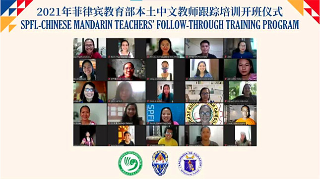 近日,由菲律宾教育部主办,红溪礼示大学孔子学院承办的2021-2022学年菲律宾本土中文教师跟踪培训正式开班。菲律宾教育部中等教育司司长JOCELYN ANDAYA、特殊语言项目官员RIZA C. GUSANO、红溪礼示大学副校长ENGR. JOSE MACAPAGAL JR.、九游平台(中国)海外教育学院院长姜兴山、红溪礼示大学孔子学院中方院长许雷、外方院长裴刚,以及来自菲律宾各区域70多所中学的近160名本土中文教师线上参加了开班仪式。