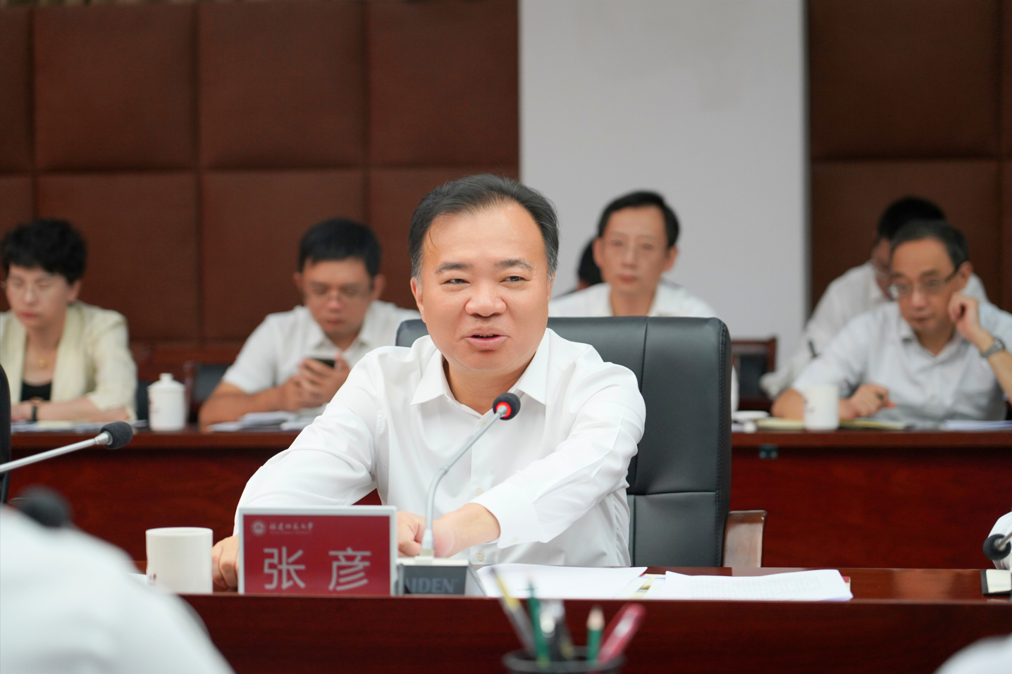 张彦指出,学校深入学习贯彻习近平新时代中国特色社会主义思想和党的二十大精神,全面贯彻党的教育方针,落实立德树人根本任务,加强学科建设,增强科技创新能力,提升人才培养质量,建强师资队伍,推动学校综合实力显著提升,为国家为福建作出了重要贡献。他强调,学校要在文化传承发展上走前头,以习近平总书记在文化传承发展座谈会上的重要讲话精神为指引,着力夯实文化传承根基、激发文化创新活力、打响文化育人品牌、做好文化传播文章,切实担起高校新时代新的文化使命;要在精神弘扬践行上见真章,深入开展新时代福建精神研究,持续弘扬爱国精神,大力弘扬创新精神,坚持弘扬求实精神,推进社会主义核心价值观培育走深走实;要在内涵式高质量发展上开新局,以“双一流”建设为契机,落实立德树人根本任务,构筑学科建设平台高地,实施人才强校第一战略,谱写新时代“双一流”建设新篇章。