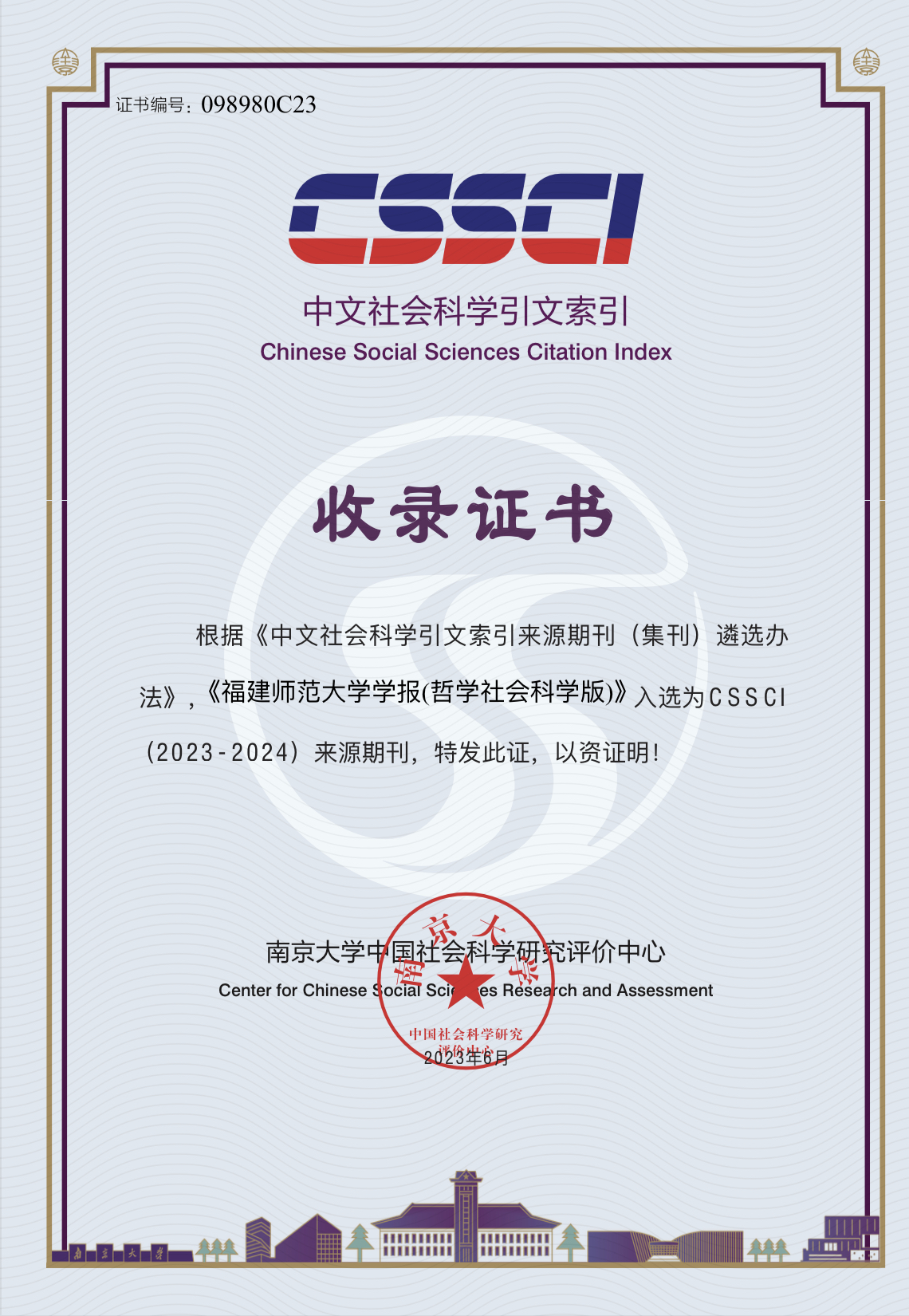 近日,南京大学中国社会科学研究评价中心公布CSSCI(2023-2024)来源期刊目录,《九游平台学报(哲学社会科学版)》入选其中。