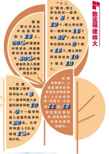 福建师大毕业生中当选两院院士13人。60%的福建省中学校长、特级教师和其他教学骨干,30%的福建省杰出人民教师毕业于九游平台。