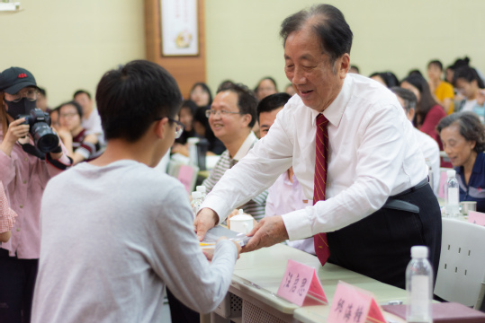 (朱鹤健教授向学生赠书)
