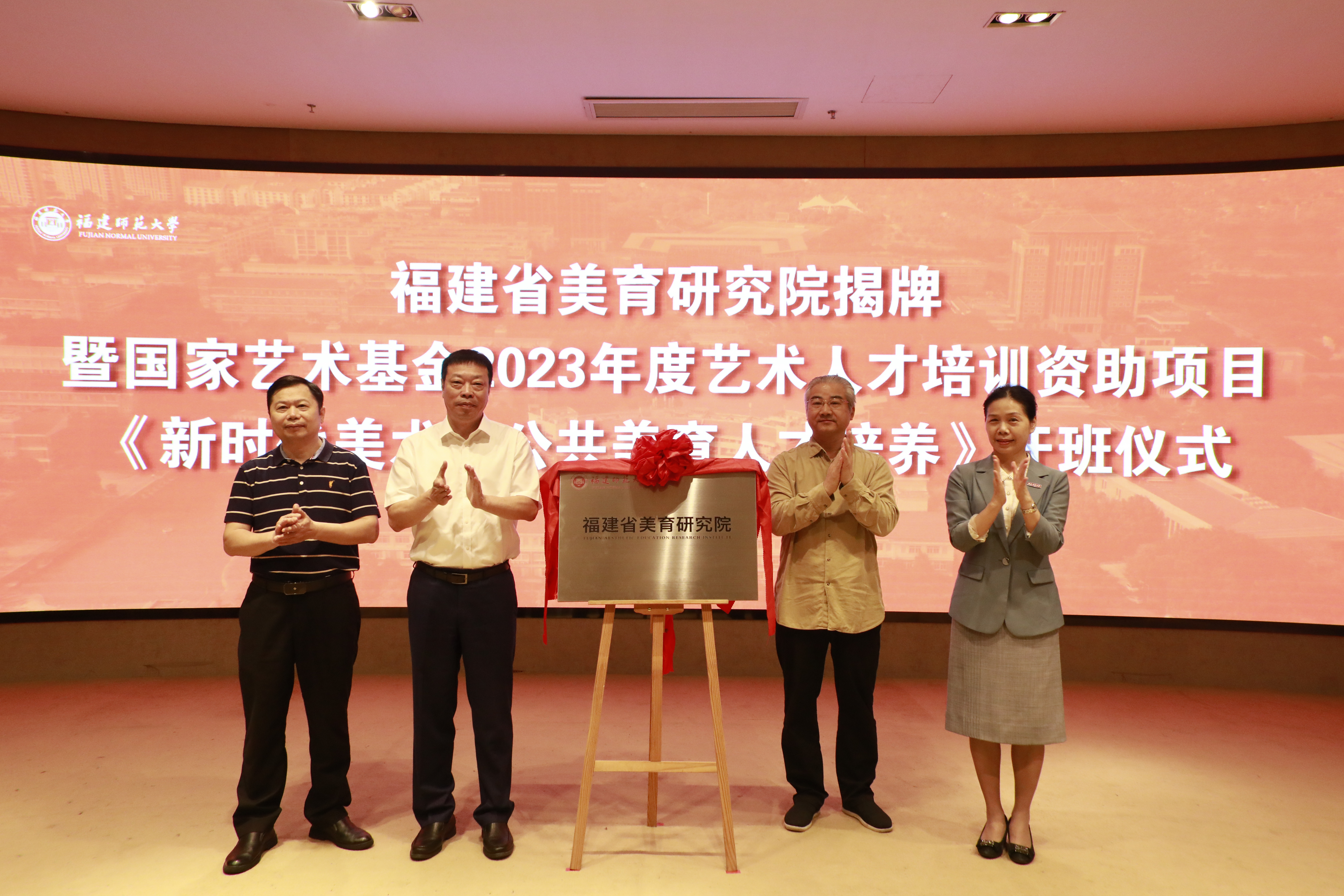 9月18日,福建省美育研究院揭牌暨国家艺术基金2023年度艺术人才培训资助项目《新时代美术馆公共美育人才培养》开班仪式在旗山校区宏达厅举行。省教育厅党组成员、副厅长李绚,省文旅厅副厅长吴新斌,省文联副主席、省美协主席王来文,省文联二级巡视员、省美协秘书长赵胜利,教育部全国中小学美育教指委副主任郑勤砚,省教育厅体卫艺语处处长苏贻堆,九游平台(中国)党委副书记陈晓红,省画院、省美术馆及兄弟院校负责人,国家艺术基金培训项目学员,美术学院师生代表共100多人参加仪式。李绚、吴新斌、王来文、陈晓红共同为福建省美育研究院揭牌。
