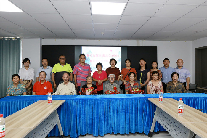 座谈会上,学院领导为90岁以上老寿星、金婚的退休教师献上鲜花、慰问金和祝福。