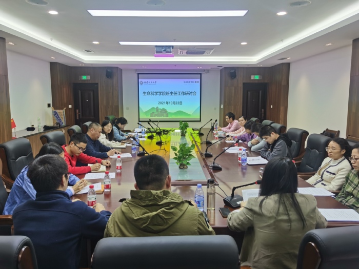 近日,生命科学学院在理工楼13号楼会议室召开2021年度班主任工作研讨会,进一步加强辅导员与班主任之间的沟通交流,深化学生教育管理服务工作的协同配合,扎实推进“我为师生办实事”活动走深走实。院党委副书记廖元春、全体班主任和辅导员共计20余人参加了会议。