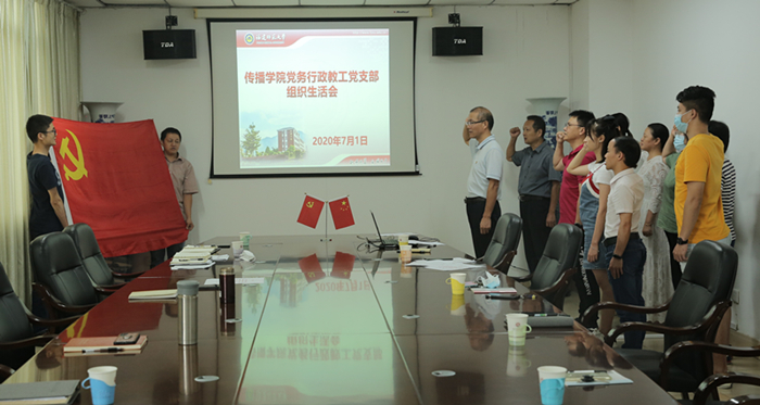传播学院党委通过专题党课、重温入党誓词等形式,激励广大党员干部永葆共产党人政治本色,守初心,担使命。学院党委书记郑文灿给大家上了一堂“守初心、担使命,做新时代优秀共产党员”的专题党课。