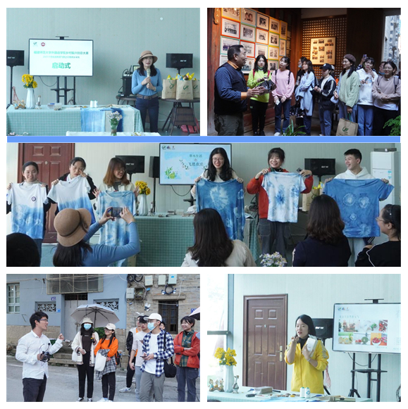 在长乐猴屿村飞思农庄,同学们了解农庄的运营模式与企业文化,切身感受现代化智能农业的独特魅力,品尝当地特色农产品,探索农业营销策略的实际运用。了解中国民间传统染色工艺,开展“草木染旧衣,碳中和先行”主题劳动竞赛活动,运用所学的扎染工艺使旧衣物焕然一新,在手工劳动中提升生态环境保护意识,并对民间文化的创造性传承和创新性发展作出了新的思考。