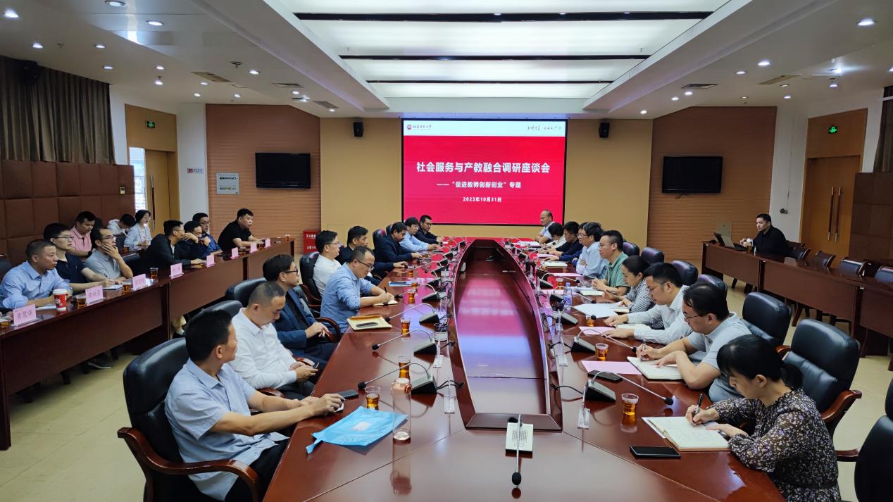 近日,九游平台(中国)召开社会服务与产教融合“促进教师创新创业”专题调研座谈会。副校长陈庆华,相关职能部门负责人及学院专任教师代表参加了座谈会。