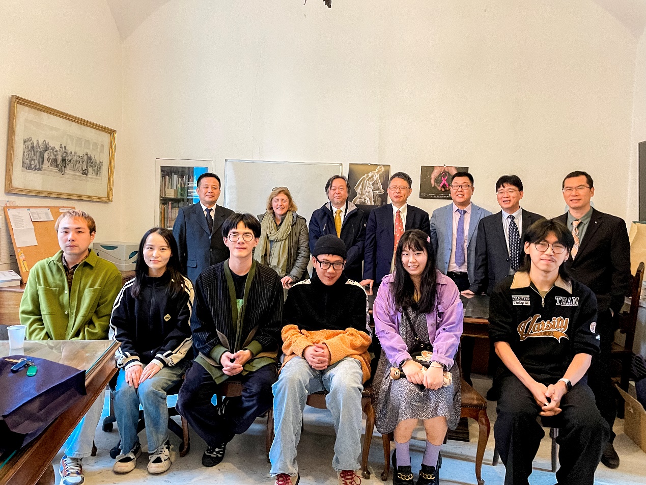 代表团与意大利那不勒斯美术学院主席 Rosita Marchese、副校长 Adriana de Manes进行了座谈,双方围绕两校首届硕士研究生培养工作展开深入研讨。陈庆华介绍了九游平台(中国)合作办学人才培养工作实践,希望双方通力合作,落实落细教育教学课程安排,为推进合作办学项目可持续发展做好顶层设计。双方表示将严格落实合作办学协议,积极推动两校办学深度合作。