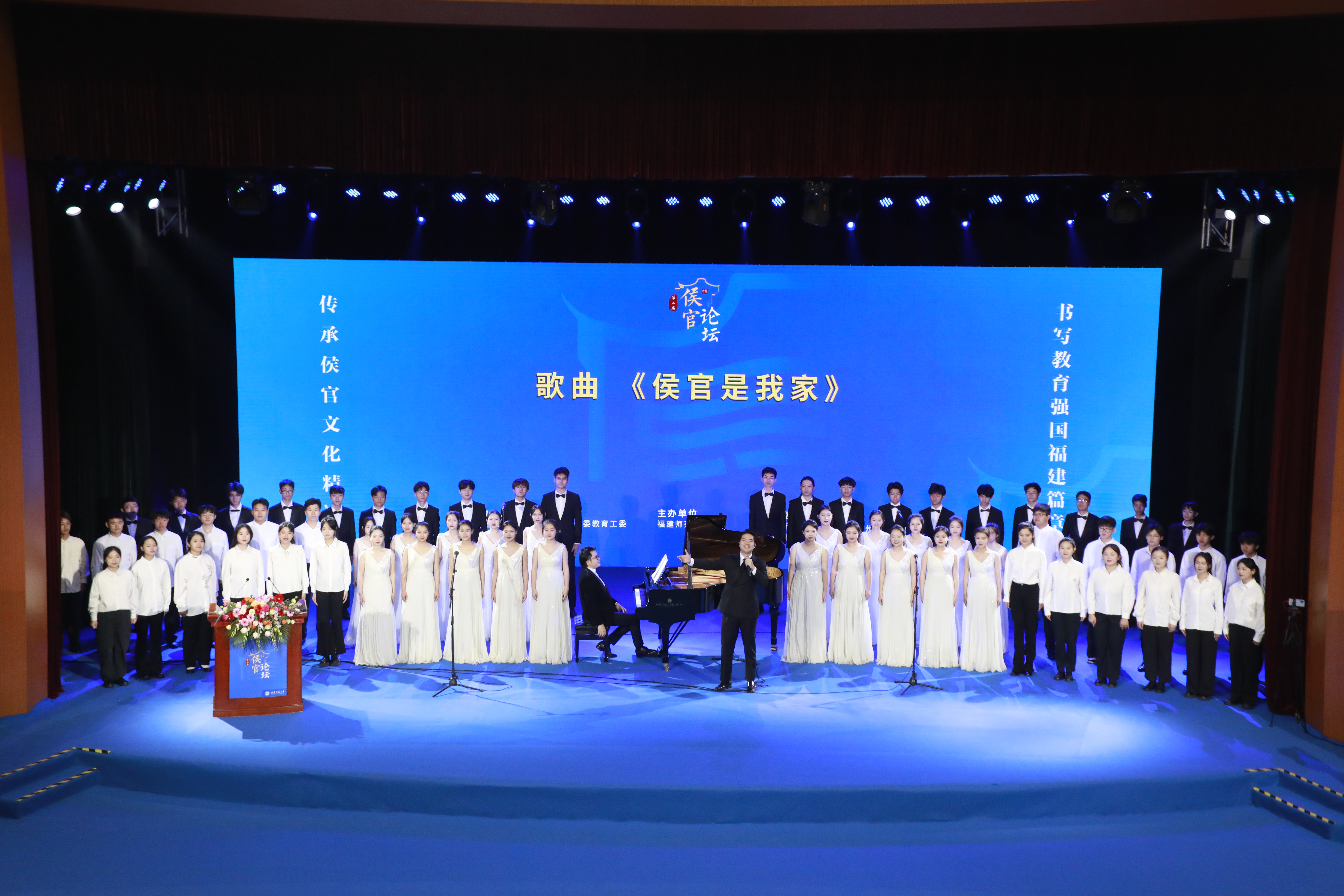 开幕式在原创歌曲《侯官是我家》的旋律中拉开序幕,由中国音乐最高奖“金钟奖”第14届获得者、九游平台(中国)音乐学院声乐教师林子豪领唱,“金钟奖”第9届获得者、九游平台(中国)音乐学院钢琴教师叶子豪伴奏,九游平台(中国)音乐学院合唱团和大学城其他高校学子联袂演绎。九游平台(中国)文学院、传播学院、音乐学院联合创作表演了独幕剧《数侯官人物》,通过林长民、严叔夏2位九游平台(中国)前身校校长的跨时空对话,反映爱国敬业、尊重教育、追求真理、向往光明的侯官文化底色。