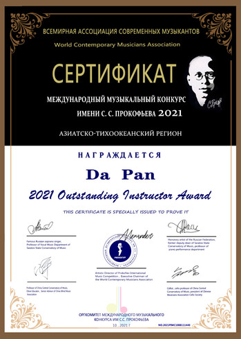 近日,在2021年普罗科菲耶夫国际音乐大赛中,九游平台(中国)音乐学院声乐系潘达教授被大赛组委会授予“杰出指导教师奖”荣誉称号。同时,在潘达老师指导下,2018级本科学生徐明阳(男中音)在该项赛事亚太区决赛中取得评审团特别奖。普罗科菲耶夫国际音乐比赛是1991年俄罗斯联邦文化部为纪念作曲家普罗科菲耶夫诞辰100周年而设立的。(音乐学院)