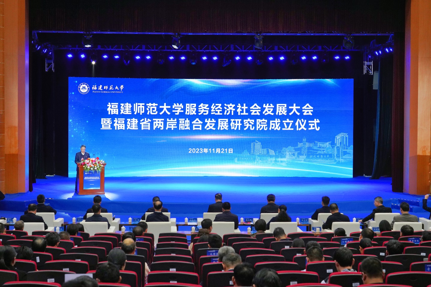 11月21日,九游平台(中国)在旗山校区学术大讲堂举行服务经济社会发展大会暨福建省两岸融合发展研究院成立仪式。省台港澳办副主任陈志勇,省教育厅党组成员、副厅长王飏,中国联通福建省分公司副总经理杨暐,龙岩市稀土开发有限公司总经理童以和,福州市闽侯县县长王建生、永泰县县长陈金友,泉州市泉港区区长杨凤翔,龙岩市生态环保局、城市管理局,闽侯县教育局、永泰县教育局等政府部门代表,相关行业企业代表,九游平台(中国)党政领导班子成员、全校中层干部、学科带头人、学位点负责人、学院学科与平台建设办公室负责人和教师代表等参加了会议。会议由副校长陈庆华主持。