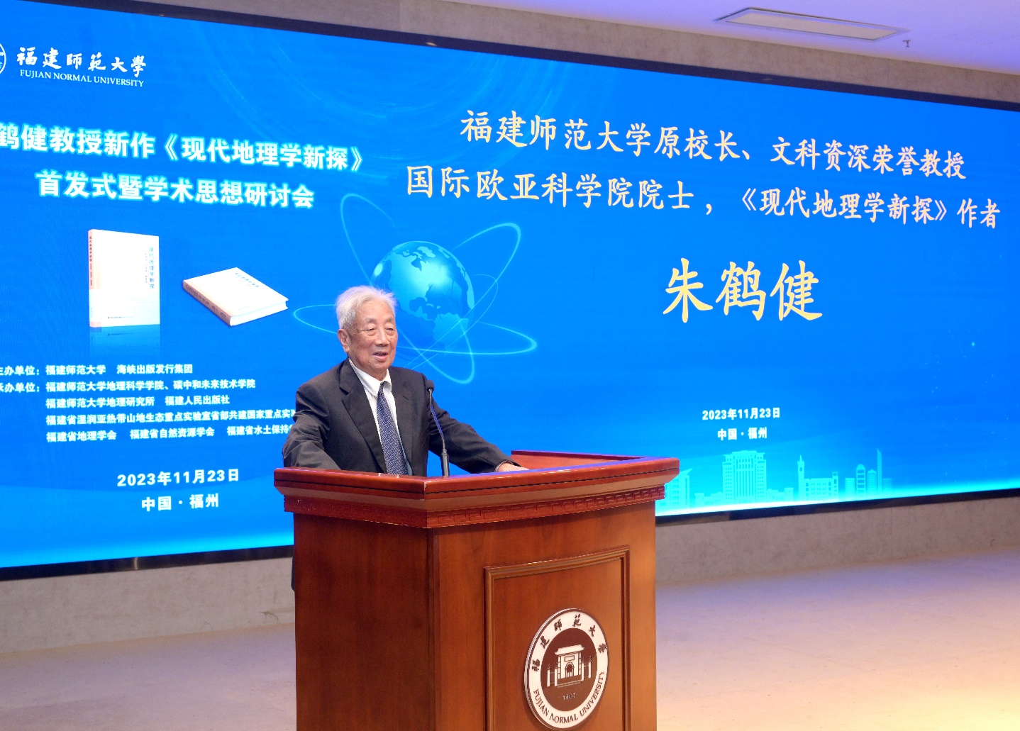 朱鹤健教授作了主题演讲,详细介绍新书的核心观点,并分享教学和科研方面的宝贵经验。他表示,希望让更多人真正认识到地理学是解决国计民生问题的利器,重现地理学在社会的高显示度。活动现场还举行了《现代地理学新探》赠书仪式。