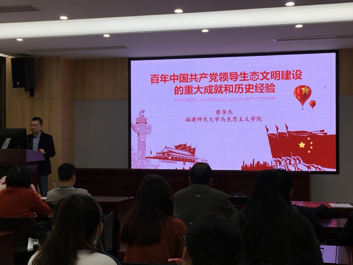 12月15日,心理学院党委邀请校“学习贯彻党的十九届六中全会精神宣讲团”专家、马克思主义学院博士生导师蔡华杰教授为学院全体教职工与学生党员作题为“百年中国共产党领导生态文明建设的重大成就和历史经验”的讲座。