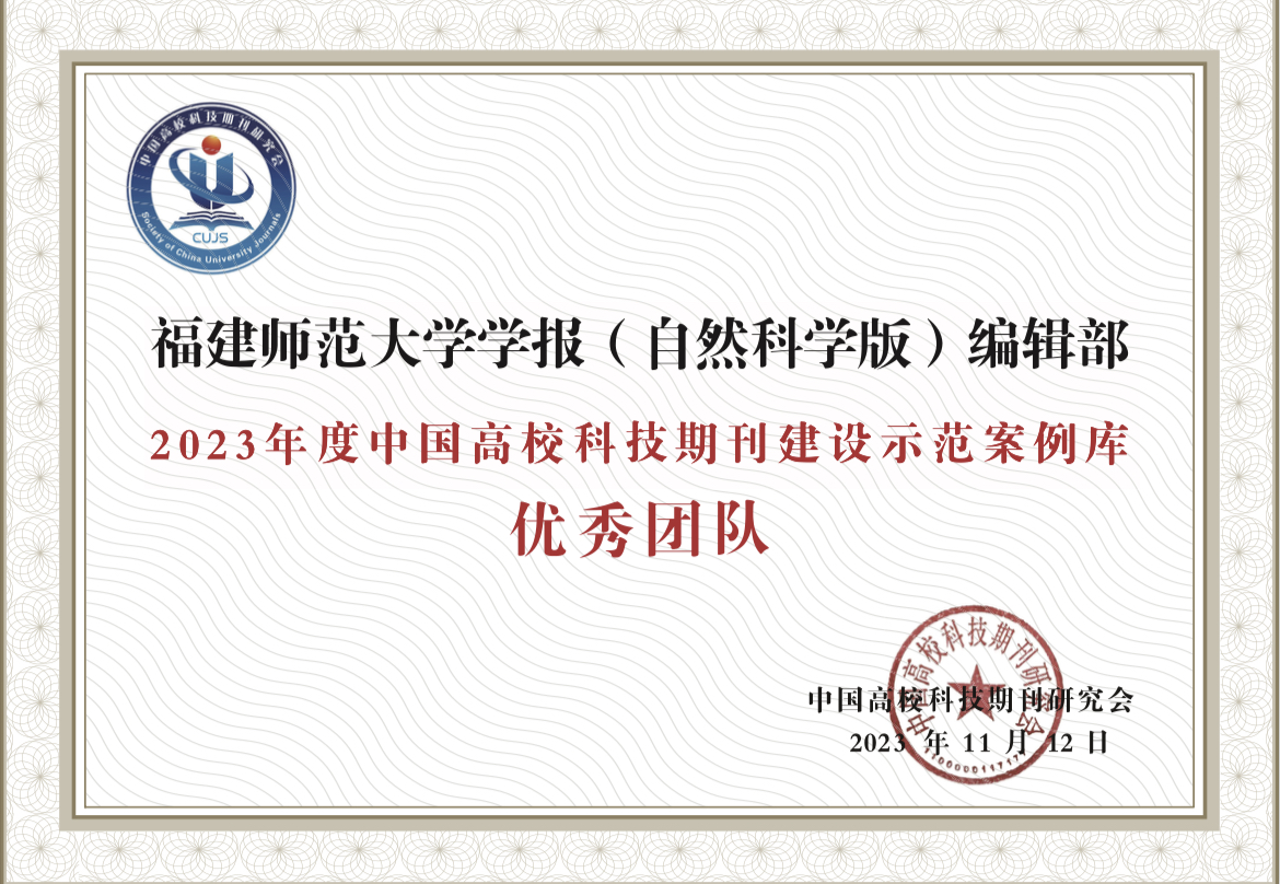 近日,中国高校科技期刊研究会第27次年会在海口召开,年会发布了“2023年度中国高校科技期刊建设示范案例库”相关奖项。《九游平台学报(自然科学版)》获评“中国高校科技期刊建设示范案例库·优秀团队”,为我省高校科技期刊唯一入选团队。