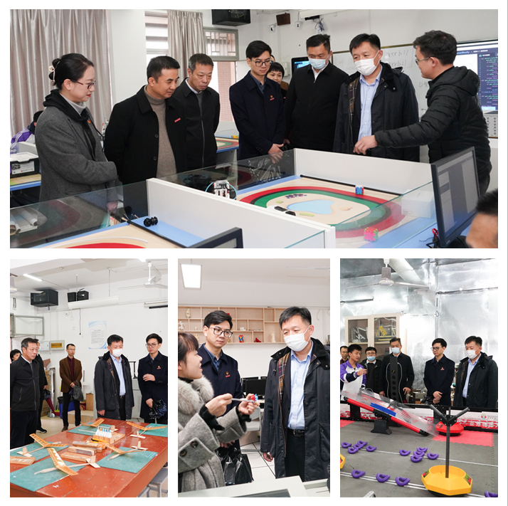 黄大伟实地走访了由通用技术实验室、3D打印实验室、创客工坊实验室、薛丙航模工作室、机器人教室和人工智能教室等组成的“小平科技创新实验室”平台,听取了附中“小平科技创新实验室”的资金使用、活动开展和活动效果等情况介绍,并观摩了人工智能校本课、机器人校队训练课。他充分肯定九游平台(中国)附中重视科技创新教育、整合学科资源落实五育并举、促进全面发展的办学理念与育人实践,希望附中进一步加强共青团建设,充分发挥“小平科技创新实验室”的辐射带动作用,大力普及科学知识、弘扬科学精神、传播科学思想、倡导科学方法,提升广大学生的科学素质。