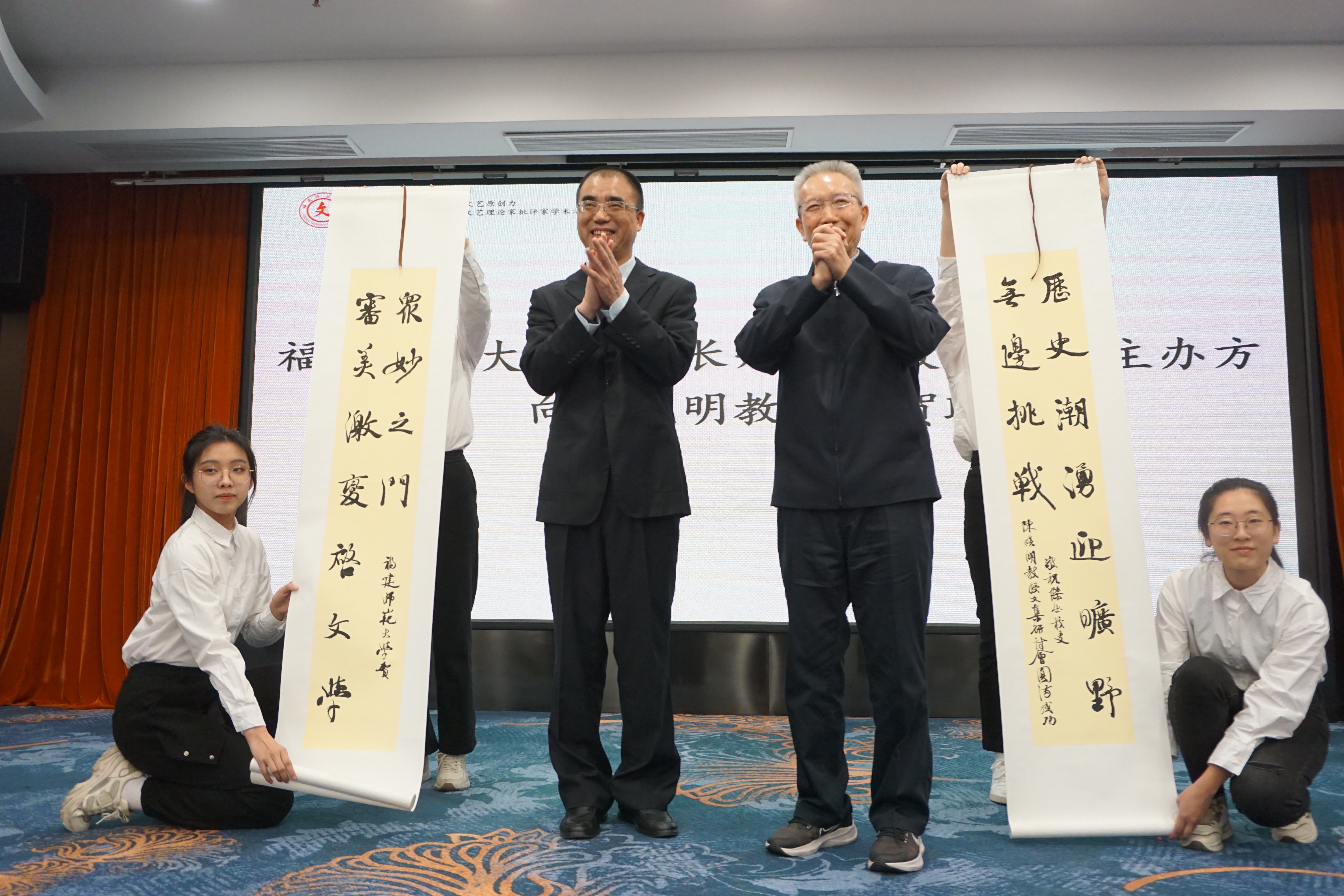 会议于12月15日至17日在福州举行。中国作家协会书记处书记邓凯,中国作家协会创研部副主任李朝全,省文联一级巡视员、副主席、省作协主席陈毅达,闽派文艺理论家批评家谢冕、孙绍振、王光明、张陵、陈晓明、黄发有、吴子林、谢有顺,以及全国各地高校、学术机构的文艺评论家70余人参加会议。副校长郑家建在开幕式上致辞并代表学校向陈晓明教授敬送贺联。