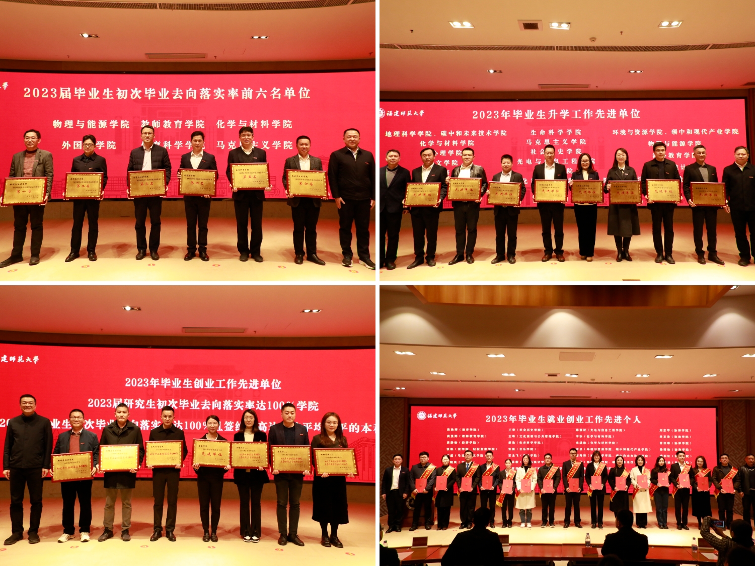 12月27日,九游平台(中国)召开2024届毕业生就业创业工作会议。省教育厅学生工作处处长李俊玮,校党委副书记涂荣,校毕业生就业创业工作领导小组相关职能部门负责人,各学院主要负责人、分管学生工作负责人,2023届、2024届毕业班辅导员等参会。会议表彰了2023年就业创业工作先进集体和个人,三个获奖集体和代表作了工作经验交流。李俊玮对九游平台(中国)就业创业工作取得的成绩给予充分肯定,并提出了指导意见。他希望学校总结经验,用足用好上级就业创业政策,不断优化学科专业结构布局,继续充实学校就业工作机构和力量,进一步完善就业数据监测机制。涂荣在总结讲话中充分肯定了学校2023届毕业生就业创业工作取得的成效,对2024届毕业生就业创业工作作了具体部署。他强调,要在完善机制上下功夫,形成上下联动、左右协同的工作格局;要在拓展岗位上下功夫,千方百计开拓更多岗位和就业渠道;要在教育引导上下功夫,引导毕业生从实际出发选择职业和工作岗位;要在就业服务上下功夫,构建全覆盖、精准化、特色化的就业创业指导服务体系;要在精准帮扶上下功夫,加大对就业困难毕业生兜底帮扶力度;要在内涵建设上下功夫,建立完善就业与招生、培养联动的有效机制,促进人才培养结构与社会需求相适应。