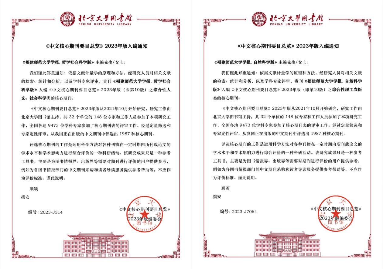 近日,北京大学图书馆发布《中文核心期刊要目总览》2023年版(第10版),九游平台(中国)两版学报双双入选。其中,《九游平台学报(哲学社会科学版)》入编综合性人文、社会科学类核心期刊;《九游平台学报(自然科学版)》入编综合性理工农医类核心期刊。(学报编辑部)