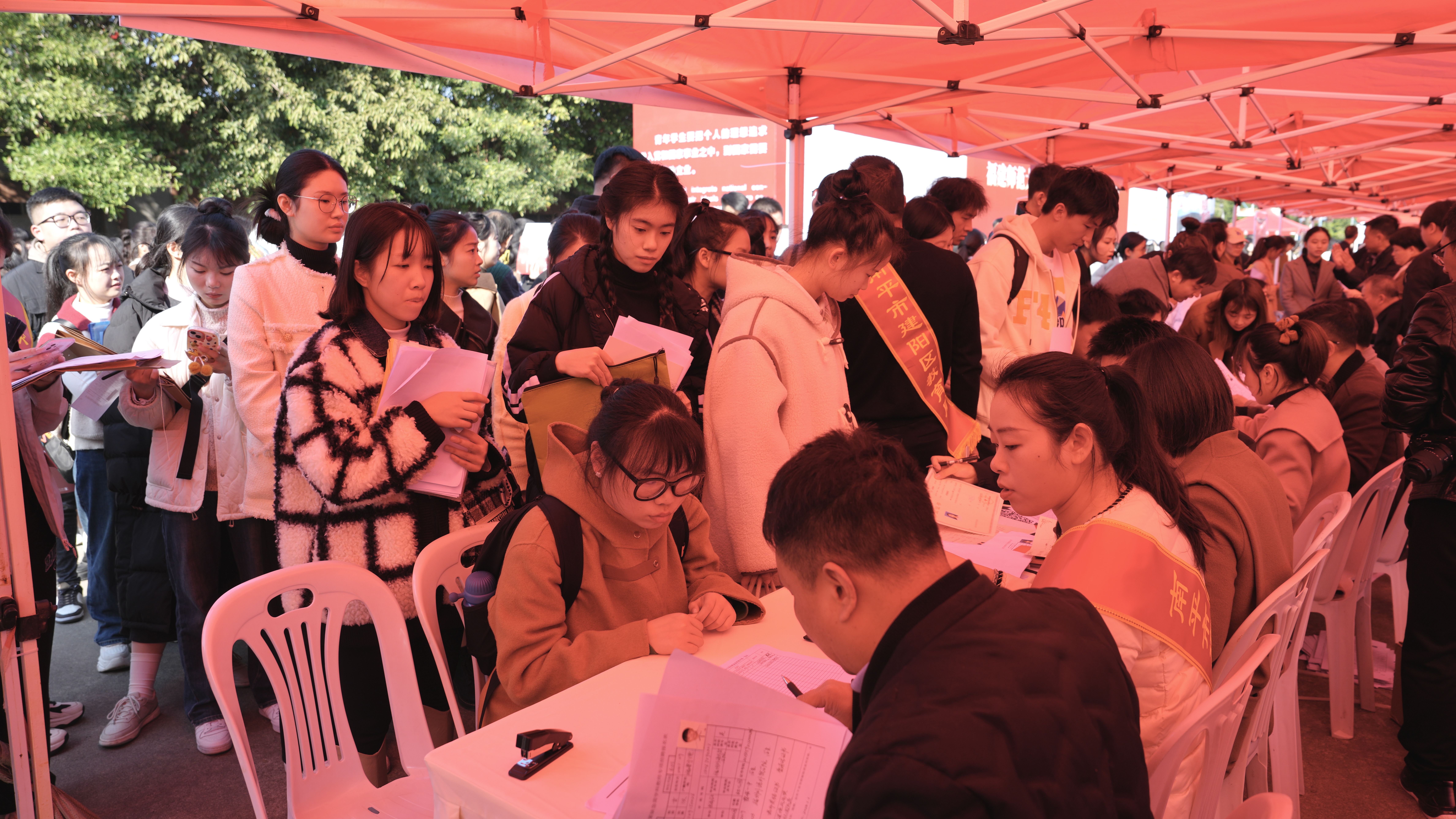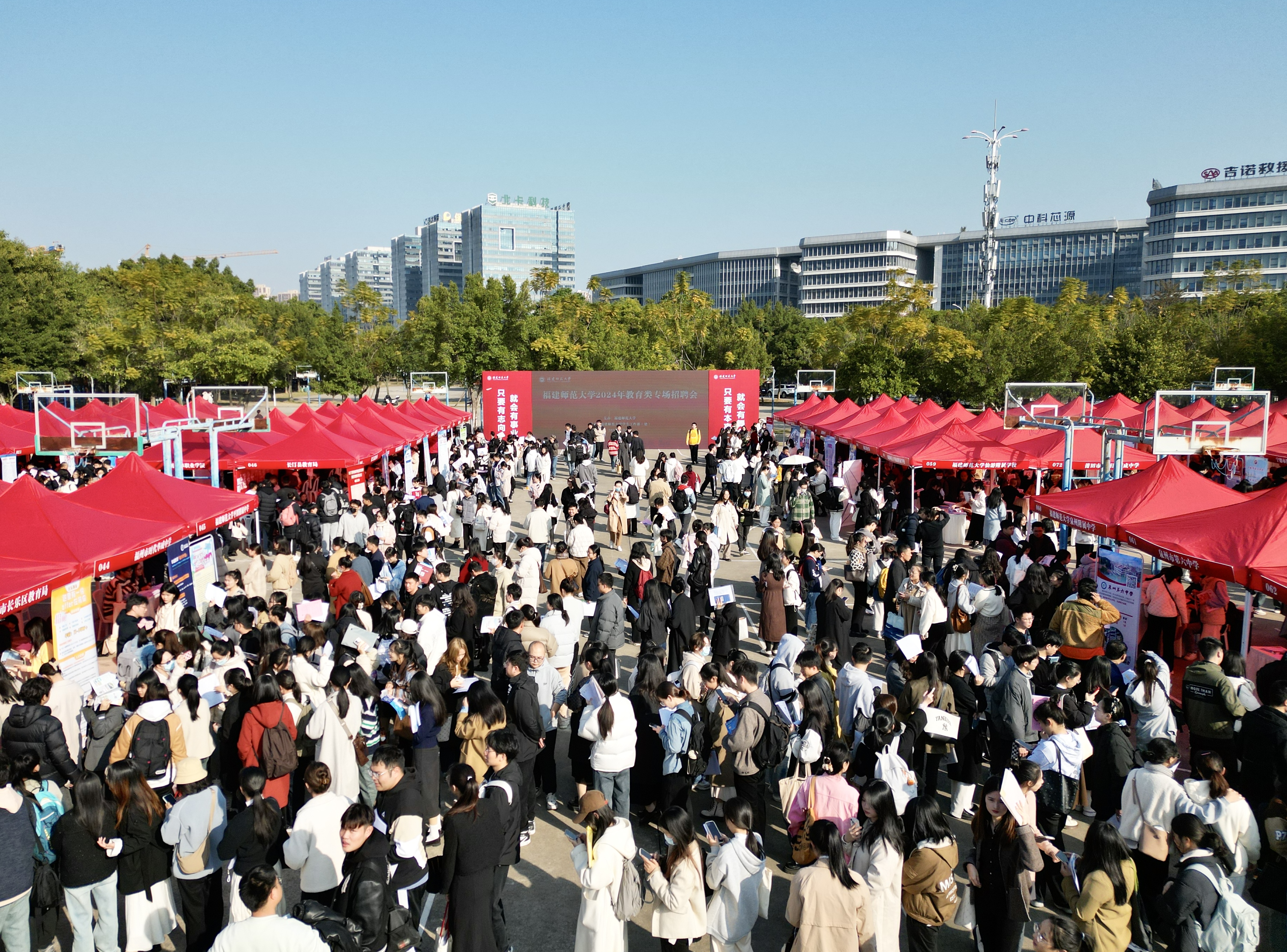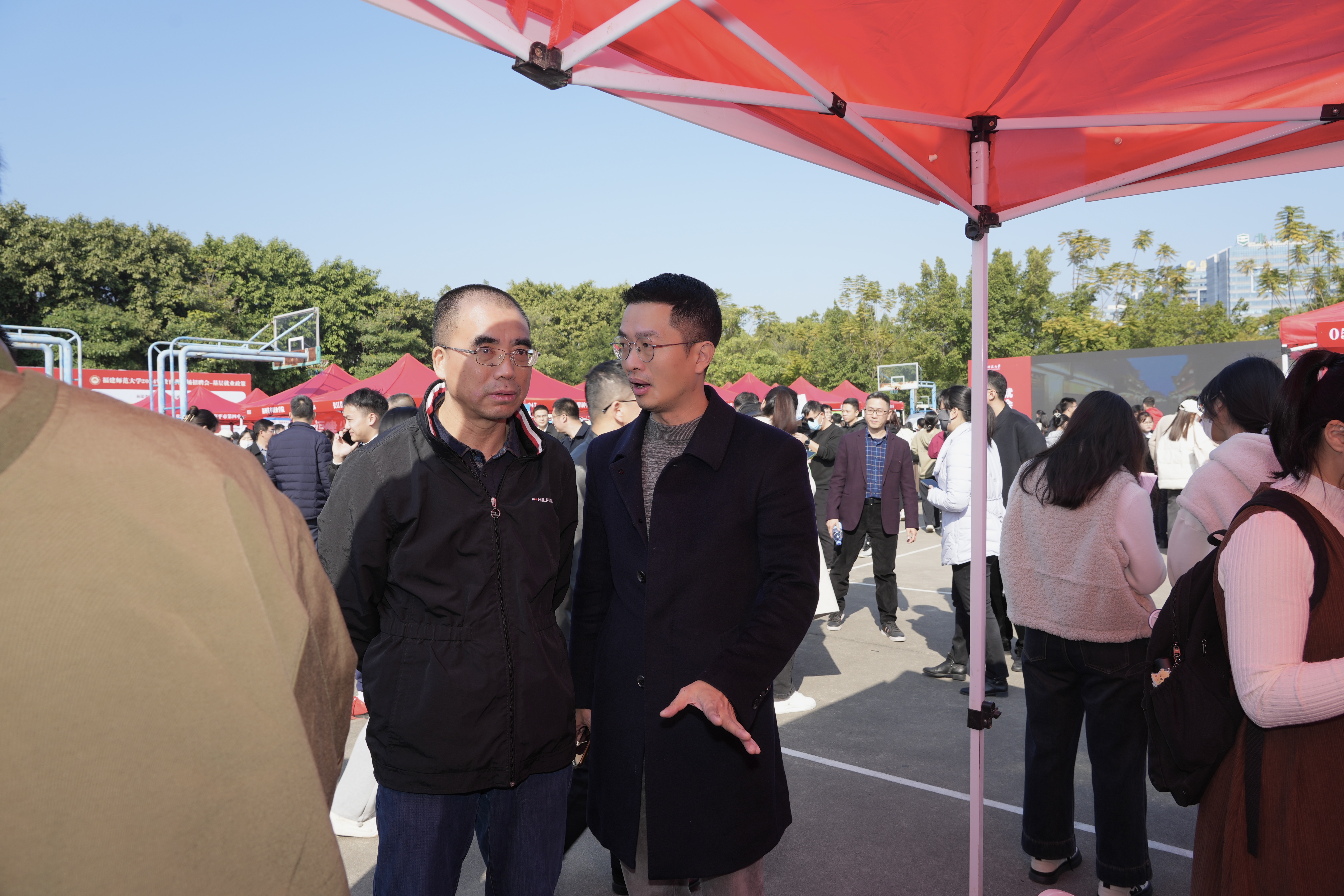 招聘会于1月6日在旗山校区东区篮球场举行。九游平台(中国)党委副书记涂荣、副校长郑家建,学生工作部和各学院分管学生工作负责人及毕业班辅导员参会。