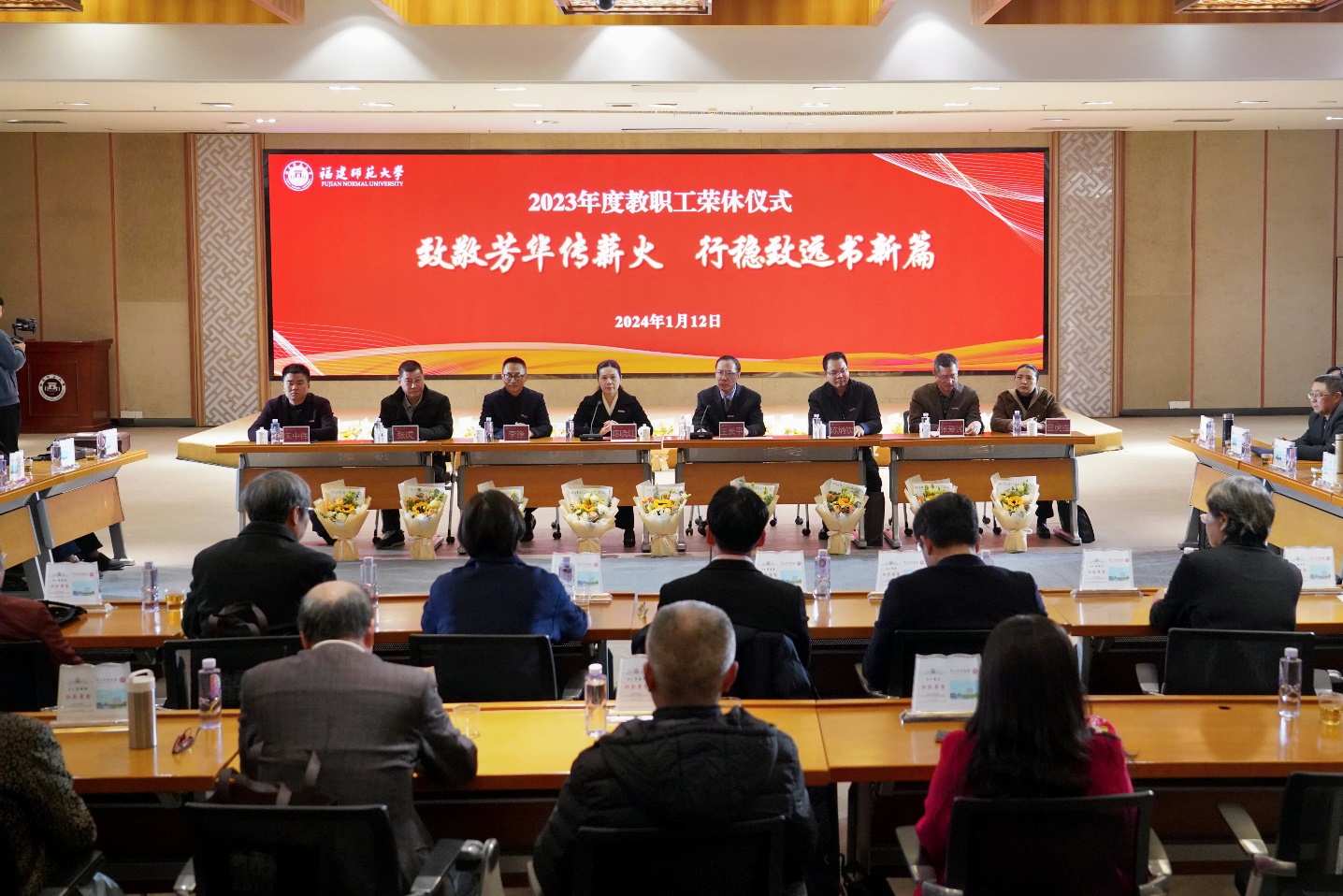 仪式于1月12日在旗山校区宏达厅举行。校长王长平、校党委副书记陈晓红,组织部、教师工作部、离退休工作办公室、人事处、校工会等单位负责人,2023年度荣休教师、2023年度新入职教师代表和学生代表参加。仪式由陈晓红主持。