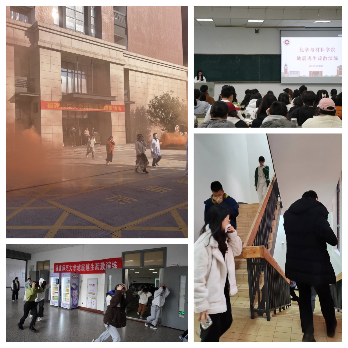 演练中,化学与材料学院组织师生学习地震产生原因、逃生技巧等知识,模拟师生在教室上课中突发地震,师生按照应急预案,有序从教室内紧急疏散至应急疏散点;地理科学学院模拟办公实验楼发生火情后,全楼师生根据火灾应急疏散预案要求,安全有序撤离。演练活动提高了师生防灾减灾意识和能力,检验了应急预案的实战性、可操作性,全力筑牢校园安全防线。