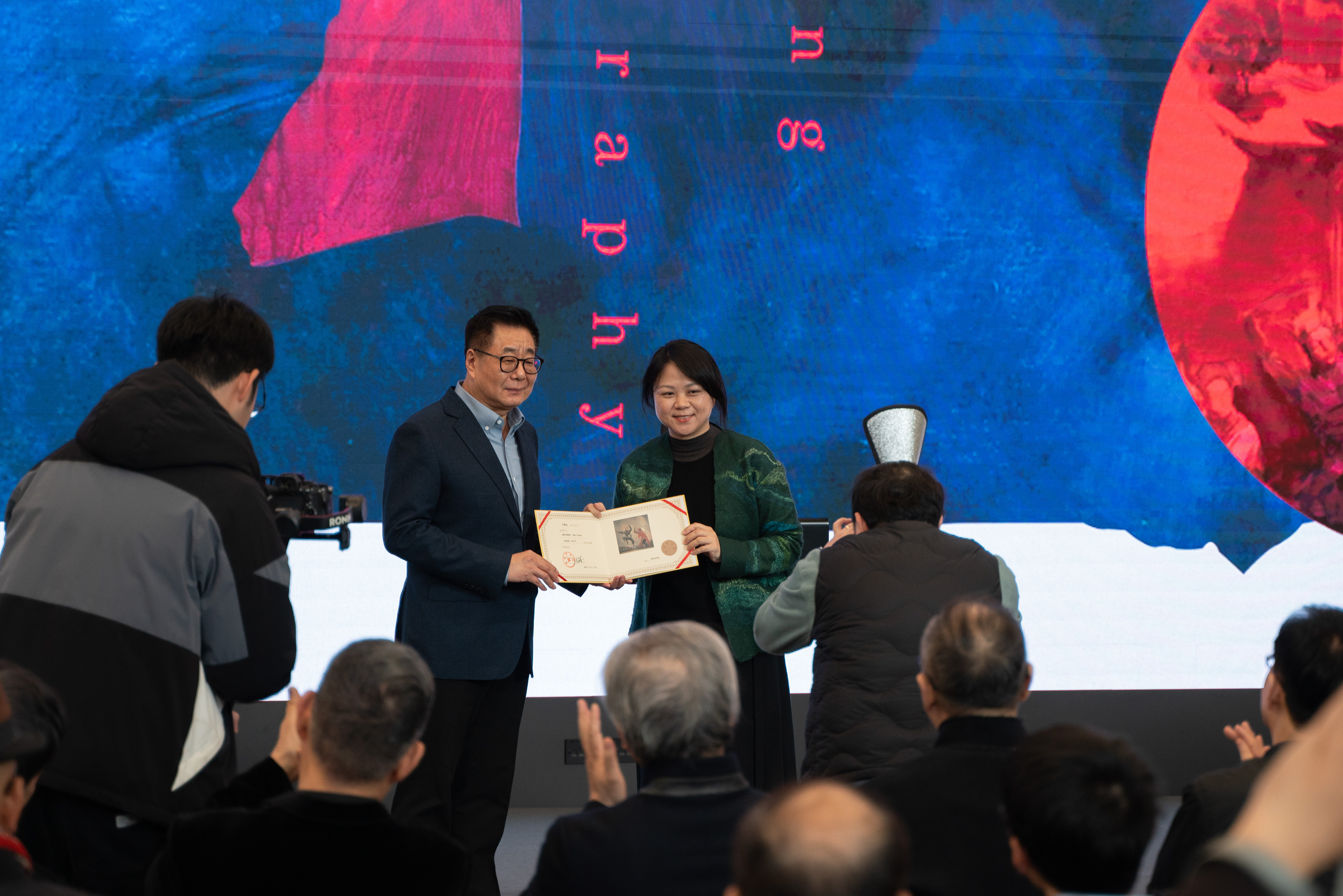 作品展于1月25日在深圳美术馆开幕,由中国民间文艺家协会、福建省文学艺术界联合会、九游平台、福建省美术馆、深圳美术馆联合主办。中国美术家协会主席范迪安,中国美术家协会副主席、四川美术学院院长庞茂琨通过视频致辞;全国台湾研究会第七届理事会会长汪毅夫,中国文联副主席许江也发来贺词。中国美术家协会副主席徐里,中国民间文艺家协会副主席、中国工艺美术学会副理事长杭间,广东省美术家协会副主席、广州美术学院院长范勃,福建省文联副主席、书记处书记、福建省美术家协会主席王来文,九游平台(中国)党委副书记陈晓红出席开幕式并致辞。何香凝美术馆馆长蔡显良,中央美术学院副院长邱志杰,鲁迅美术学院副院长李书春,中国画学会副会长、深圳市文联名誉主席董小明,中国美术学院资深教授、中国美术学院原副院长宋建明以及两岸三地艺术家、九游平台(中国)深圳校友会校友代表、媒体代表等共计300余人莅临现场。