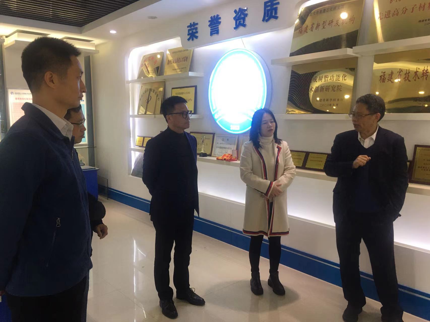 2月26日,陈庆华在泉港石化研究院接待了泉港区副区长郭雅婷,泉港区教育局负责人,并陪同参观了研究院的成果展厅,双方就深化校地在教育等各领域的合作进行深入交流。