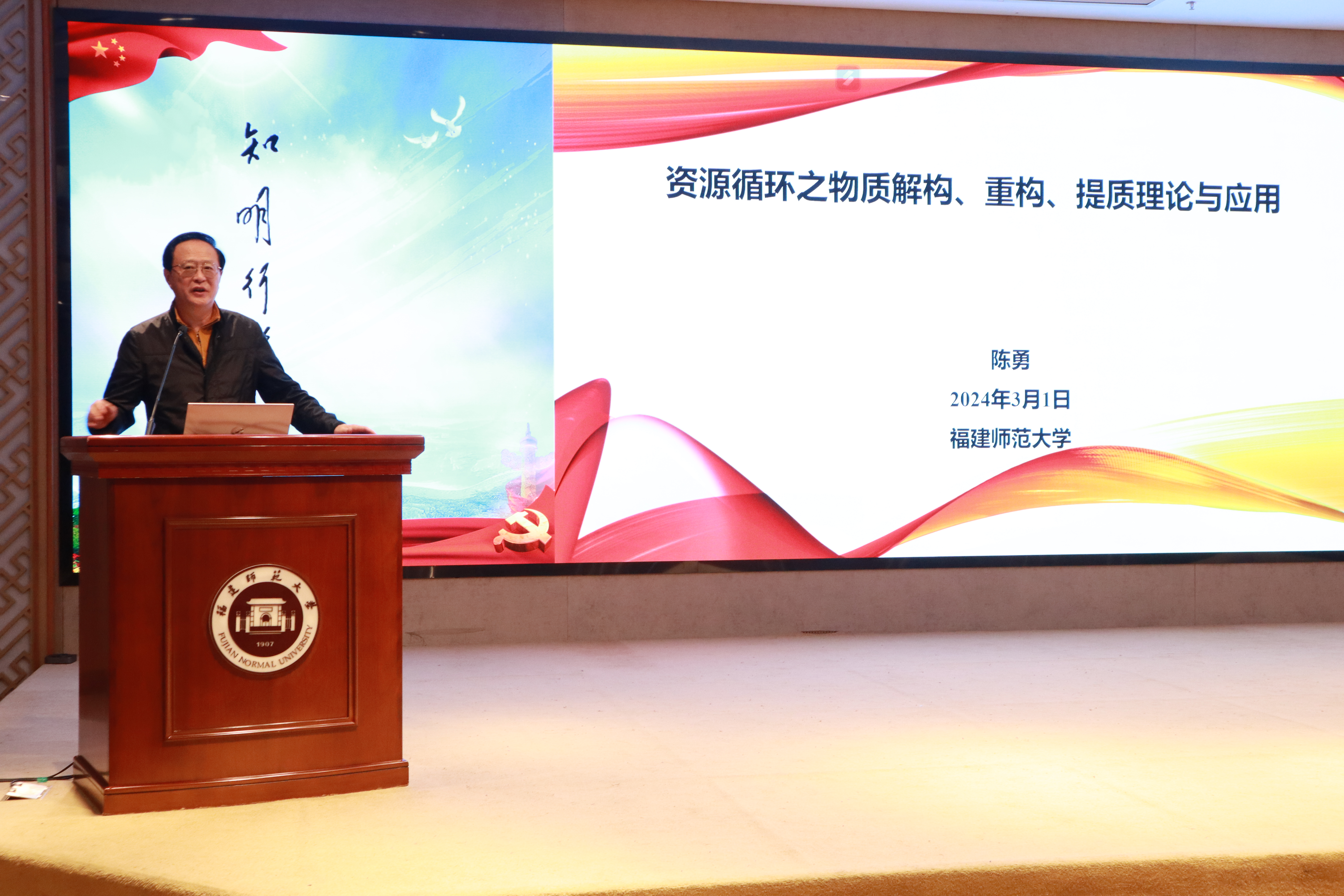 近日,国际欧亚科学院院士、中国工程院院士、中国科学院广州能源研究所首席科学家陈勇来校作题为“资源循环之物质解构、重构、提质理论与应用”的学术报告,报告会由副校长陈庆华主持,相关企业代表、学校师生代表150余人参加。