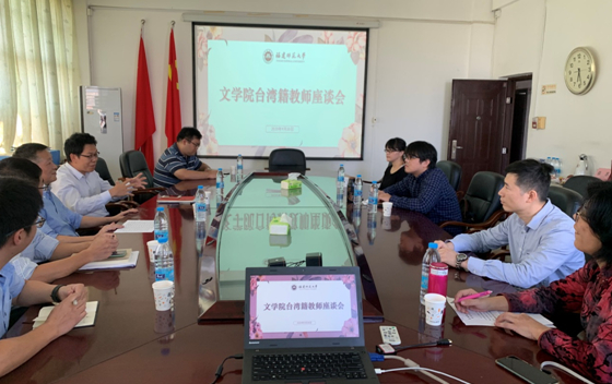 日前,文学院在文科楼701会议室召开2020年台湾籍教师座谈会。人事处、教师工作部等相关职能部门代表,院领导,学院台湾籍教师参加了座谈会。