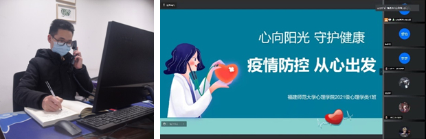 注重心理“关怀”。坚持用“心”防疫,为学生提供全天候心理咨询服务,(心理服务热线:旗山校区0591-22867242,仓山校区0591-83456404;24小时心理援助热线:18960928820;学生朋辈心理辅导热线:15359170120)开通网络辅导服务“福师大树洞君”(QQ:3496538990),通过《清心源》《心电台》等栏目推送疫情期间心理调适科普文章,组织全校近500名班级心理健康宣传员开展防疫心理健康主题班会活动,帮助广大学生筑起战胜疫情的强大心理防线。