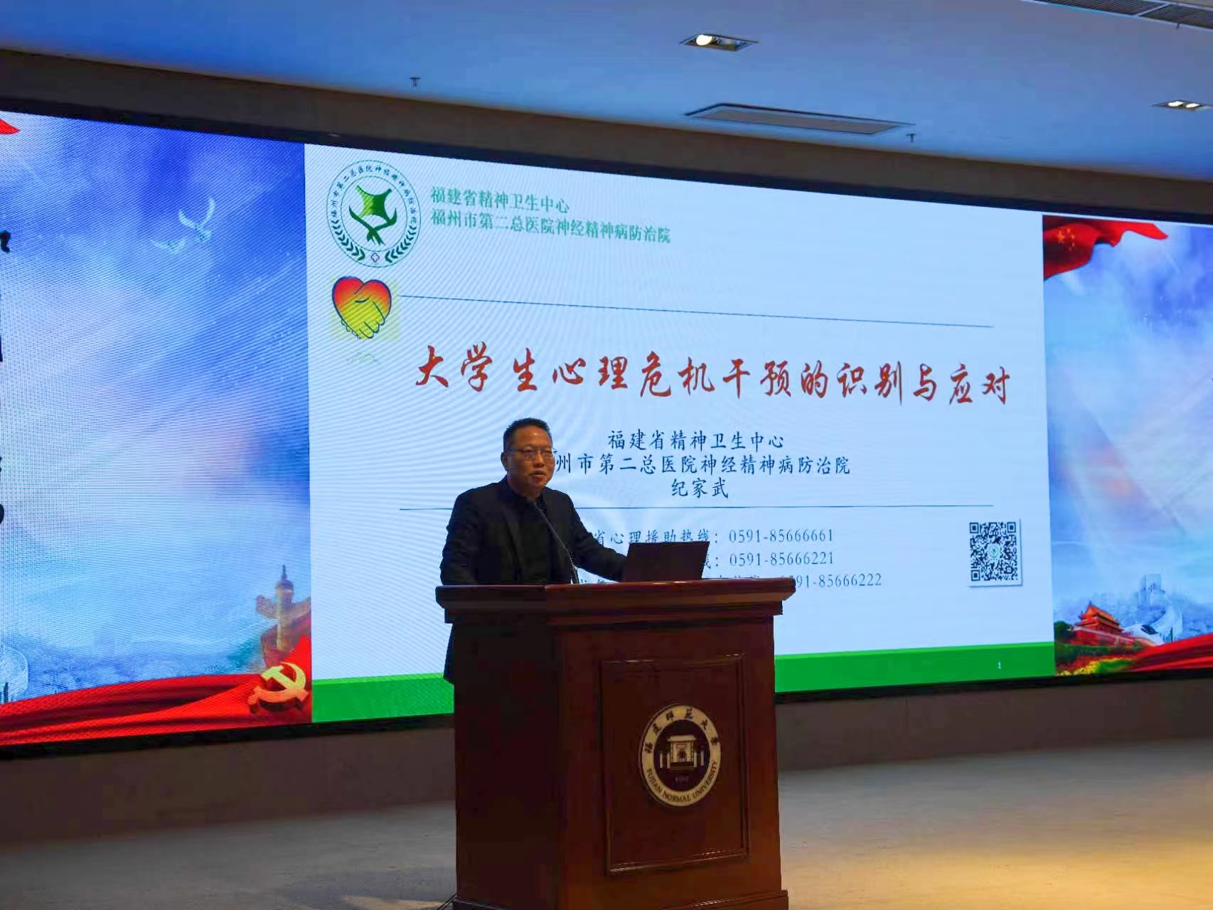 主论坛上,福州第四医院院长纪家武作题为“大学生心理危机的识别与干预”的专题讲座,详细阐述了大学生常见心理障碍的现状、特征与表现,分析了心理危机的识别信号与风险因素,并从专业的角度提出了学生心理危机干预的思路和应对措施。