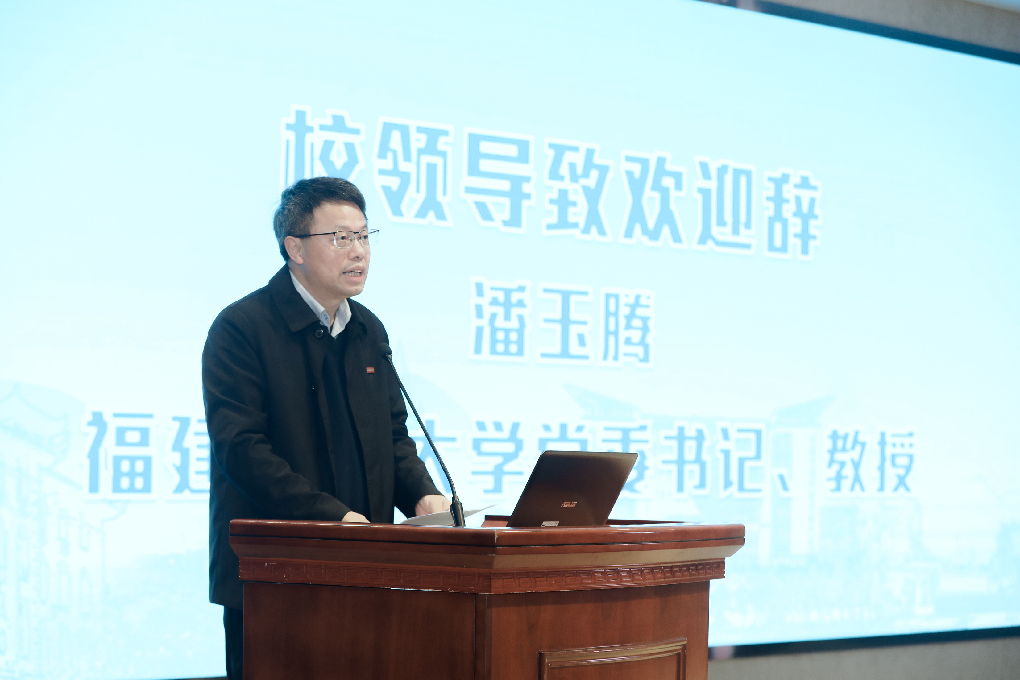 校党委书记潘玉腾致欢迎辞。他首先代表学校向与会嘉宾和学者表示热烈的欢迎和衷心的感谢,并用“承”“诚”“成”三个字为引,介绍了学校的发展历史和现状。他表示,福建师大是一所传承百年文脉的高等学府,具有深厚的人文底蕴,人文社会科学学科实力雄厚、优势突出,是砥砺品格、增长才干的重要平台;是诚纳天下英才的一方沃土,引才聚才政策积极开放,重才爱才氛围浓厚,是人才聚集之地、人才辈出之地、人才向往之地;是成就美好未来的人间福地,具有得天独厚的自然环境,人才发展软硬环境兼优,是广大英才施展才华、成就梦想的理想舞台。他诚邀人文社科英才来到有福之州,加盟福建师大,共谱学校事业发展新华章。