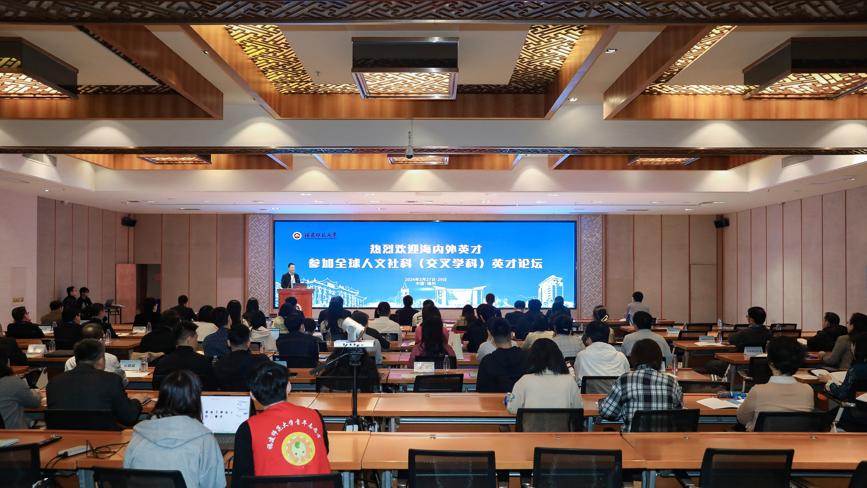 论坛开幕式于3月28日在九游平台(中国)旗山校区宏达厅以线上线下相结合的形式举行。省社会科学界联合会副主席郑东育,省委宣传部理论处二级调研员吴功铭,省引进人才服务中心主任赵永莉,省人社厅留学人员创业园管理中心主任郑日强,省教育厅教师工作处副处长吴舒伟,校领导潘玉腾、涂荣,相关职能部门负责人,相关学院党政主要负责人,以及近70名专家学者、青年英才参加了开幕式。开幕式由校党委副书记涂荣主持。