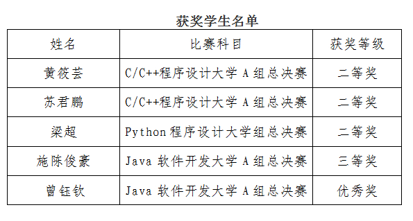 11月14日,第十一届“蓝桥杯”全国软件和信息技术专业人才大赛全国总决赛落下帷幕。本次大赛中,数学与信息学院共有5位学生进入全国总决赛,最终取得3项二等奖、1项三等奖、1项优秀奖的优秀成绩。据悉,“蓝桥杯”全国软件和信息技术专业人才大赛作为一项面向在校大学生的全国性IT学科竞赛,旨在提高大学生创新思维,促进软件和信息领域专业技术人才培养,为产业输出有创新能力和实践能力的高端人才,提升高校毕业生的就业竞争力。 (数学与信息学院 游崇盈)