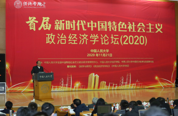 On November 21, the 1st Forum on Socialist Political Economy with Chinese Characteristics (SPECC) in a New Era (2020) was held at Renmin University of China (RUC). Prof. Li Jianping delivered a keynote speech, entitled “Three Major Theoretical Contributions of Das Kapital and Its Contemporary Enlightenment” at the conference. In his view, one of Marx’s theoretical contributions in Das Kapital is the theory of labor value in the abstract and the concrete forms, which constitute an interrelated and inseparable organic whole of labor value theory. At present, we need to make efforts to deepen the research on the specific forms of labor value theory, taking into account the new situations of the socialist market economy. The second major theoretical contribution is the construction of a dialectical system based on historical materialism, which is both a method and a theory, consisting of four levels: historical materialism, objective and subjective dialectics, formal logic and mathematical methods, and methods transplanted from other sciences, especially the natural sciences. To build a socialist political economy with Chinese characteristics, we should more consciously adhere to and apply the dialectical materialist worldview and methodology, and enhance dialectical and strategic thinking abilities. The third major theoretical contribution is the theory of organic structure, which Marx called “the glorious achievements of German science”. Das Kapital is an “artistic whole”, a living organism whose structural elements (categories) are intrinsically connected, not mechanically arranged. SPECC should be a relatively complete scientific system with clear concepts, strict structures, consistent logic and Chinese style rather than a hodgepodge.