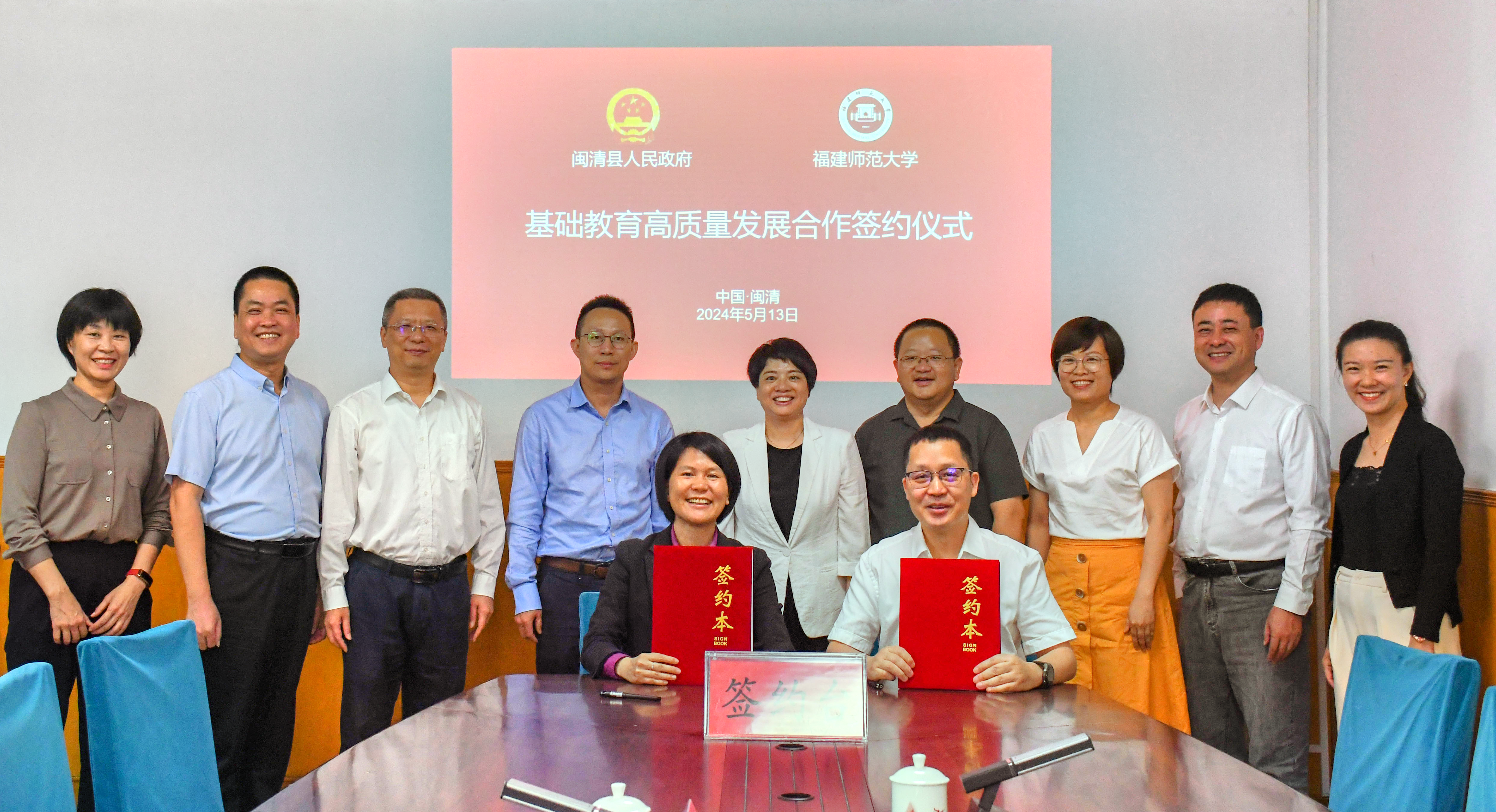 签约仪式于5月13日在闽清县政府举行。闽清县委副书记林燕青、县委宣传部部长刘鸿、副县长陈秀宜、县教育局局长陈武厚、副局长李峰、闽清县教师进修学校校长潘元鑑,九游平台(中国)副校长刘三女牙,教育学院、体育科学学院负责人及相关学院教师代表参加仪式。