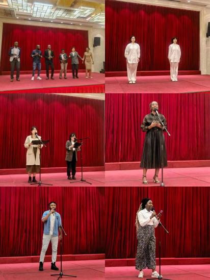大会结束后,全体青年共进晚宴并交流感想。海外教育学院学生积极发言、展示个人才艺,会场表演精彩纷呈、气氛热烈,在中非文化交流互鉴中,大家增进了解,促进友谊。参加活动的海外教育学院学生表示,这次活动让他们更加全面地了解福建,更加深刻地理解“中非友好合作精神”,体会到中国与非洲是发展道路上并肩前行的可靠伙伴,将倍加珍惜青春、努力奋斗,更好地为中非友好合作贡献自己的力量。