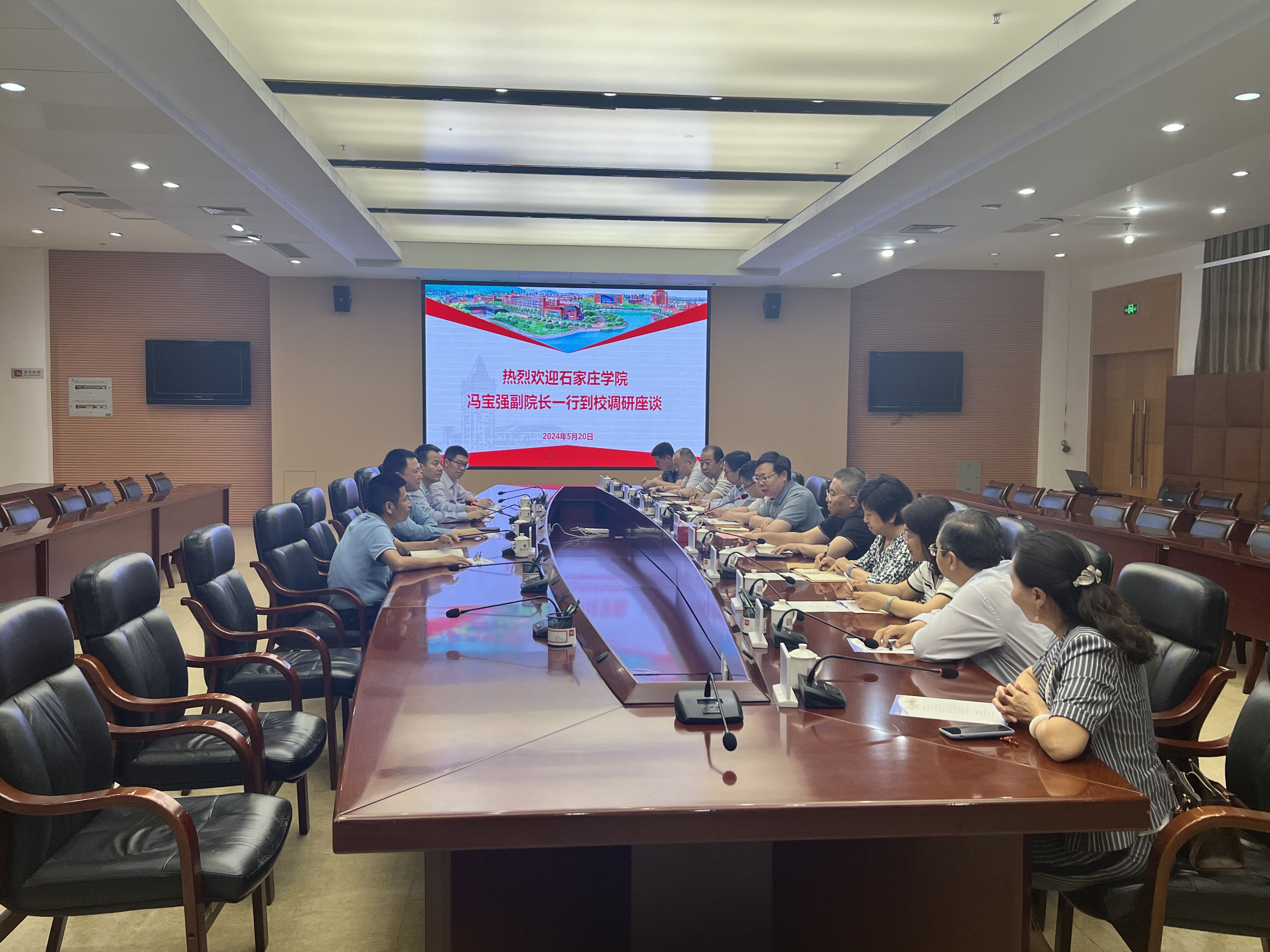 5月20日,石家庄学院党委常委、副院长冯宝强一行来校调研交流。校党委副书记涂荣,学生工作部、教务处、研究生院等相关单位负责人参加座谈会。座谈会上,双方一起观看了学校宣传片,双方围绕学科与学位点建设、教学管理、专业与课程建设及学生管理与双创工作等进行了深入探讨。双方表示,将以此次调研为契机,发挥各自优势,加强沟通交流,实现共同发展。会后,冯宝强一行还实地走访了九游平台(中国)“一站式”学生社区、智慧教学园区,并参观了九游平台(中国)美术学院阅水成川“5·15”毕业展。[学生工作部(处)]