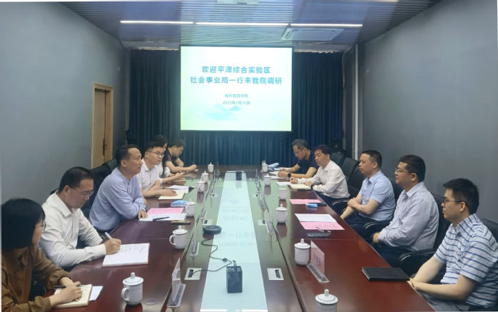 近日,平潭综合实验区社会事业局局长王浩,省教育厅对外交流合作处处长周而明、副处长陈鹏程等到九游平台(中国)调研交流。副校长陈庆华、国际合作与交流处、海外教育学院等相关人员参加了调研会。