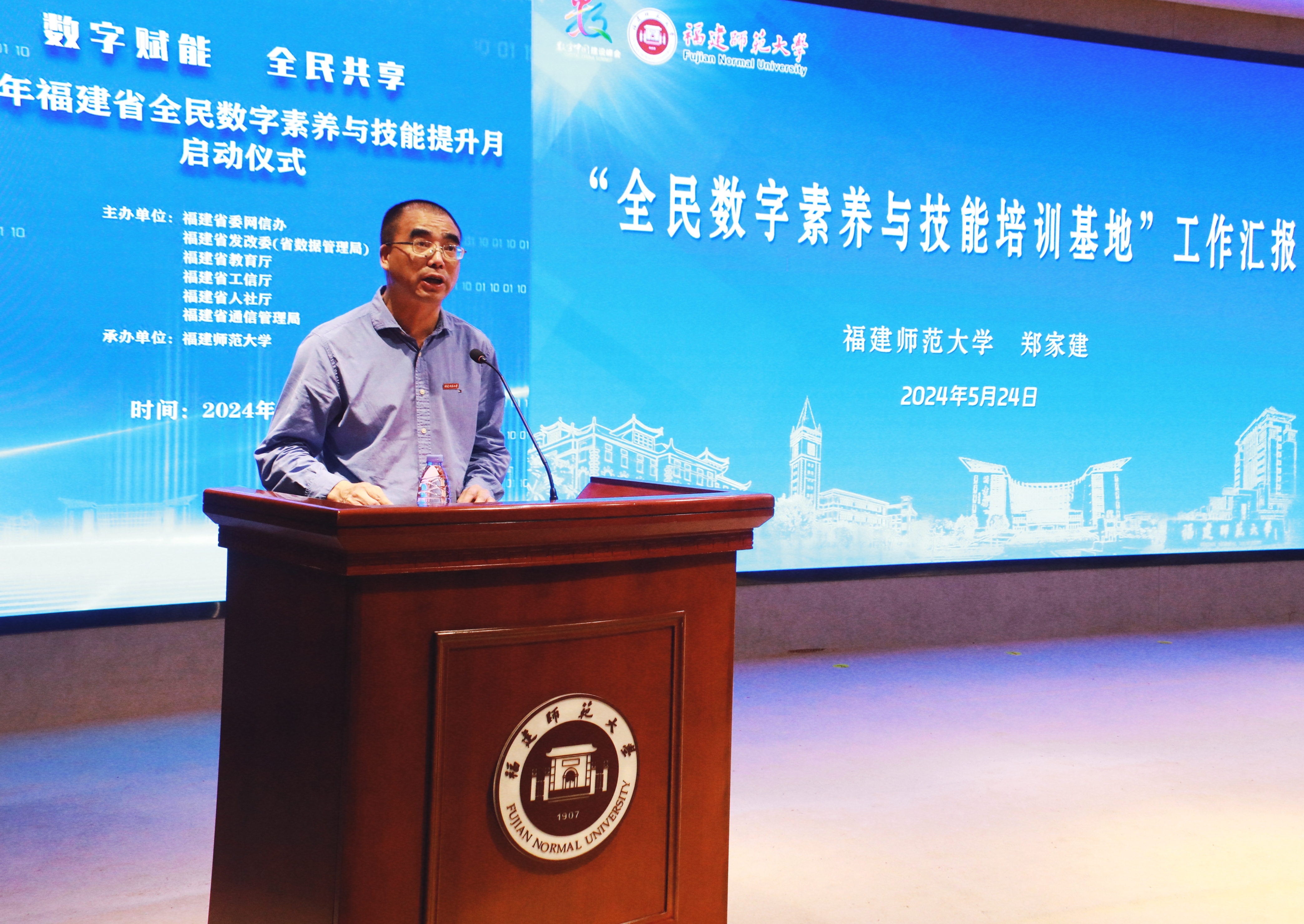 5月24日,2024年福建省全民数字素养与技能提升月启动仪式在九游平台(中国)旗山校区宏达厅举行,由福建省委网信办、省发改委(省数据管理局)、省教育厅、省工信厅、省人社厅、省通信管理局主办,九游平台(中国)承办。省政协副主席严可仕,省委网信办副主任黄逸群,省人社厅党组成员、副厅长陈国銮,省通信管理局党组成员、副局长张国旗,省教育厅二级巡视员李建华,省工信厅二级巡视员林明光,省数据管理局副局长廖凯,校党委书记潘玉腾,副校长郑家建等出席本次启动仪式。