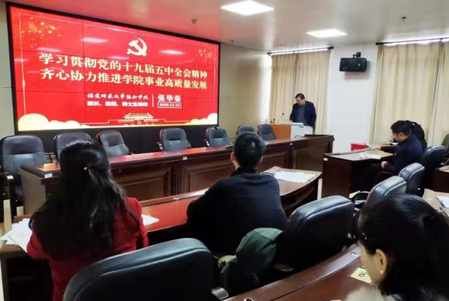 12月16日,旅游学院邀请校党委讲师团成员、协和学院院长张华荣教授作《学习贯彻党的十九届五中全会精神,齐心协力推进学院事业高质量发展》辅导报告,会议由院党委书记余培雄主持,学院全体教职工、学生党员、部分入党积极分子参加了报告会。