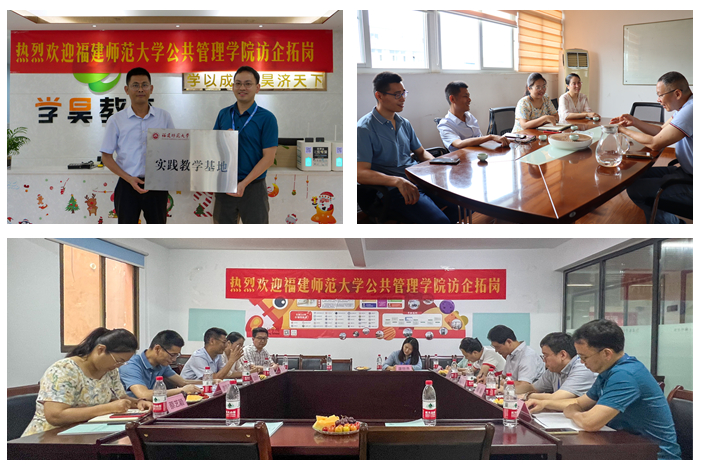 近日,公共管理学院党委副书记蓝凯仔、教师代表及毕业班辅导员前往校友企业福州展旭电子有限公司、福建学昊教育科技有限公司、福州启航教育科技有限公司开展访企拓岗促就业专项活动,并与学昊教育举行共建实践基地签约和授牌仪式。。